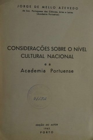 Título: Considerações Sobre o Nível Cultural Nacional e A Academia Portuense