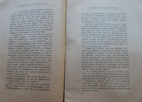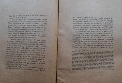 Primeira e rara edição deste "Texto integral da alocução que deveria ter sido proferida na Sala dos Capêlos da Universidade de Coimbra, no dia 11 de maio de 1924, e que nesse mesmo dia o autor leu aos pássaros a ás arvores, da varanda de Pilatos, no êrmo do Bussaco.