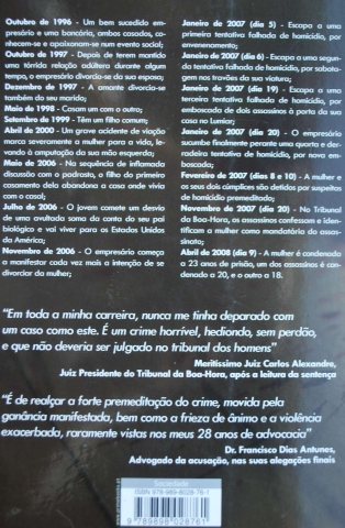Conhecido o acordão que levou à condenação dos assassinos, não podia manter o silêncio por mais tempo e produziu este livro que contém toda a verdade sobre o hediondo crime da socialite que chocou o país inteiro. O primeiro a chegar ao mercado sobre o tema, contém um significativo conjunto de novas revelações que escaparam à investigação jornalística e judicial