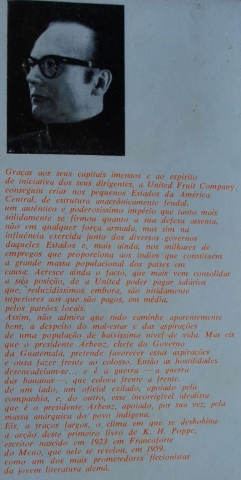 Graças aos seus capitais imensos e ao espírito de iniciativa dos seus dirigentes, a Unitd Fruit Company, conseguia criar nos pequenos Estados da América Central, de estrutura anacrónicamente feudal, um autêntico e poderosíssimo império que tanto mais solidamente se firmou quanto a sua defesa assenta, não em qualquer força armada, mas sim na influência exercida junto dos diversos governos daqueles Estados e, mais ainda, nos milhares de empregos que proporciona aos índios que constituem a grande massa populacional dos países em causa: Acresce ainda o facto, que mais vem consolidar a sua posição, de a United poder pagar salários que, reduzidíssimos embora, são nitidamente superiores aos que são pagos, e,m média pelos patrões locais.