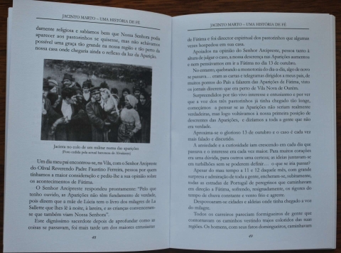 Esta obra é pois um testemunho, feito de muitos testemunhos, uns directos mas a maioria que passaram de geração para geração, das vivências, e não apenas, de Jacinta Marto. Mas é também um testemunho de Fé, escrito com a paixão de quem não duvida que a SUA VIDA SE DEVE À PASTORINHA de FÁTIMA.