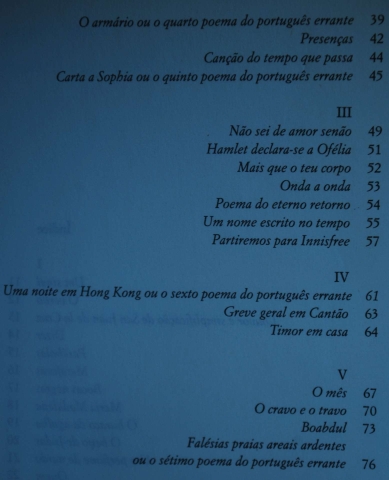 Manuel Alegre (Prémio Pessoa 99) surge com um novo livro de poemas, "Livro do Português Errante", um livro feito de errâncias e evocações, interiores e exteriores, pela vida ("Querida Sophia: como os índios do seu poema / também eu procurei o país sem mal. / Em dez anos de exílio o imaginei"), pela poesia ("Por um caminho à noite caminhava / caminhava de noite sem sentido / pela própria cadência era levado / caminhava movido por um ritmo/ a música interior que mais ninguém/ ouvia."), um livro de interrogações ("Não sei como se ressuscita / no terceiro dia/de cada sílaba/ nem se há palavra para voltar/ do grande rio do / esquecimento./ Não se no terceiro dia/ alguém me espera. Ou se/ ninguém."), de inconformismo.