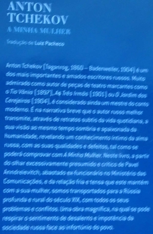 Anton Tchékhov protagonizou profundas alterações nos géneros literários onde se destacou, através das suas representações impressionistas da vida e condição humana na Rússia de seu tempo. Os seus melhores contos são atualmente tidos em alta estima tanto por escritores e críticos de referência. Neste livro encontrará,A minha mulher, Um caso médico, O monge Negro, três das melhores histórias contadas por um dos melhores escritores de todos os tempos. Em A minha mulher, Tchékhov capta um momento da vida russa revelando as graves tensões e delicadas simplicidades que coexistem em harmonia. A relação em ruínas entre Pavel Andreitch, um aristocrata rico, e a sua esposa, que já não está apaixonada ou mesmo tolerante do seu marido, apesar de estar desamparadamente dependente do seu apoio financeiro, serve como pano de fundo aos camponeses famintos das classes baixas, iluminando a tensão perene entre um homem egoísta e uma mulher lutadora que se preocupa com algo mais do que ela própria. Opinião de Leitores: Fragmentos do Retrato da Rússia Oitocentista Vitória Sousa Este pequeno volume compila três contos de Tchékhov. Ao desfrutar da sua leitura, somos transportados para a opressiva e estratificada sociedade Russa do final do século XIX. A cada página, é explorada a complexidade da natureza humana, através de personagens diferentes e pertencentes às variadas camadas sociais. É já adivinhável, no descontentamento e miséria das classes baixas, o porquê das arrebatadoras revoluções russas que tomaram lugar no século seguinte. Outro tema recorrente é o conflito desigual entre marido e mulher e as adversidade do matrimónio. A nível de linguagem, e embora cuidada, esta é de fácil compreensão, o que fomenta a envolvência das histórias. Além disso, a edição é de qualidade, a tradução está otimamente executada e o preço é escandalosamente acessível. Recomendo vivamente. Autor: Anton Tchékov nasceu em Taganrog, no sul da Rússia, no dia 29 de janeiro de 1860, filho de um comerciante. A sua família mudou-se para Moscovo em 1876 devido à falência do pai, mas Anton permanece na sua cidade natal para terminar o liceu. Assim, só três anos mais tarde se juntou à família em Moscovo, onde se matricula na faculdade de Medicina. Para ajudar financeiramente a família, Tchékhov faz pequenos trabalhos jornalísticos e as primeiras tentativas literárias. Termina os estudos de Medicina em 1884 e começa a exercer nos arredores de Moscovo. A sua primeira narrativa é publicada num jornal humorístico em 1880, desencadeando uma intensa colaboração de Anton com diversas publicações. Os seus primeiros textos dramáticos datam do final da década de 1880 ("Ivánov"). No ano de 1892 compra uma casa no campo, em Mélikhovo, para onde se muda com a família. Três anos mais tarde visita Tolstoi, cujas ideias irão exercer uma forte influência e um grande fascínio sobre Tchékhov. Por motivos de doença, muda-se para Ialta, em Crimée. É no final da sua vida que escreve as três peças que o consagram como grande dramaturgo: "A Gaivota" em 1896, "As Três Irmãs" em 1900 e "O Cerejal" em 1903. Em 1904 parte para a Alemanha com a atriz Olga Knipper, com quem casara em 1901, morrendo no mês de julho em Badenweiler, na Floresta Negra. Hoje é reconhecido como um dos maiores escritores russos.