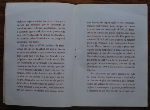 Discursos proferidos pelo General Ramalho Eanes e pelo Dr. Vasco da Gama Fernandes, no acto da investidura do Presidente da Republica. Palácio de São Bento 14 de Julho de 1976.