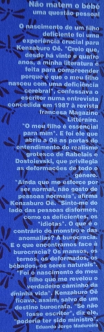 Kenzaburo Oe retrata o drama de se lidar com o insuportável. É a história de um homem em fuga - da realidade, do destino, de si próprio - da tentativa de evitar o que aconteceu e de o alterar a todo o custo.
