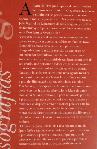 Ainda que tenha um personagem do século XVII como referência - Don Juan, que apareceu pela primeira vez em 1640 e se multiplicou como um notável conquistador em dezenas de outros romances, óperas e peças de teatro - este romance é na verdade uma história de amor contemporânea em que a arte da sedução e o sexo são algumas das moedas em circulação. O livro tem duas tramas que se entrelaçam. Numa delas, um personagem que o autor chama de Burlador percorre as ruas de Sevilha, exercitando as suas artes de conquistador compulsivo. Como o Don Juan original, ele também tem a ajuda de um Criado, que busca turistas do sexo feminino, vítimas em potencial para o apetite sexual do patrão. Já a outra trama coloca em cena um casal diferente - um cantor de coro de ópera fascinado pelos enredos mirabolantes que costumam aparecer nos libretos e uma mulher que acha que contar e ouvir histórias pode ser um dos grandes prazeres da vida e da cama