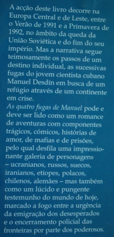 "As quatro fugas de Manuel" retrata-nos as tentativas do jovem estudante cubano, Manuel, para imigrar para a Europa Ocidental em busca de uma oportunidade para terminar os seus estudos de física. Um livro muito actual pela temática das restrições à imigração numa Europa feita fortaleza inacessível para muitos os que aí tentam, em vão, entrar. Manuel, o anti-herói deste romance, só queria que lhe dessem uma oportunidade para continuar as suas investigações, mas os controleiros políticos que o vigiam na Ucrânia, país onde estudava, não entendem que deva continuar e querem recambiá-lo para Cuba.