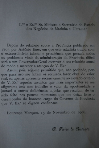 Autor: Alfredo Augusto Freire de Andrade(Governador Geral de Moçambique, 1900 a 1910)