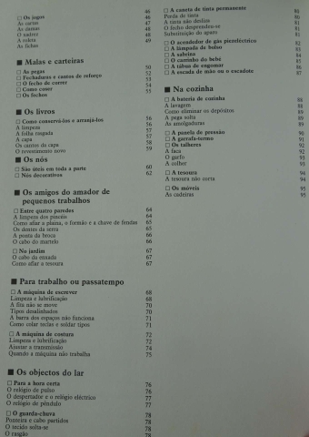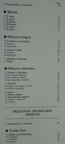Em qualquer casa há mil pequenos objetos muitas vezes esquecidos por se julgar que já não têm aproveitamento possível. Além desses, outros que se partiram, se enchem de nódoas ou se rasgaram e cujo único destino parece ser o caixote do lixo. Ora na maioria dos casos, torna-se extremamente fácil e barato proceder em casa aos arranjos necessários de muitos objetos.