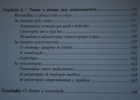A solução mais comum é começar a tomar um dos ansiolíticos ou antidepressivos que estão cada vez mais acessíveis e que parecem tratar muito rapidamente a ansiedade. Mas os autores, cientes dos riscos destes tratamentos químicos , apresentam ao leitor toda a gama de alternativas, da homeopatia à talassoterapia e dos óleos essenciasi ás vitaminas.