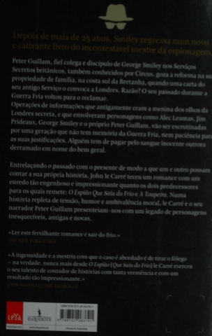 Entrelaçando o passado com o presente de modo a que um e outro possam contar a sua própria história, John le Carré teceu um romance com um enredo tão engenhoso e impressionante quanto os dois predecessores para os quais remete: O Espião Que Saiu do Frio e A Toupeira. Numa história repleta de tensão, humor e ambivalência moral, le Carré e o seu narrador Peter Guillam presenteiam-nos com um legado de personagens inesquecíveis, velhas e novas.