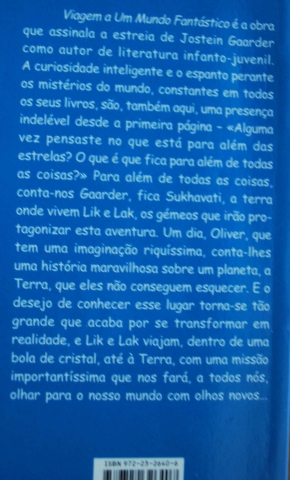 Do mesmo autor de O Mundo de Sofia e O Enigma e o Espelho, publicadas pela Presença surge-nos agora o seu romance de estreia na literatura infanto-juvenil, o livro Viagem a um Mundo Fantástico recupera toda a curiosidade inteligente e o espanto perante os mistérios do mundo, características que marcam todas as suas obras. Num sítio muito distante fica Sukhavati, o lugar onde vivem os gémeos Lik e Lak, os protagonistas desta aventura. Oliver, possuidor de uma imaginação muito fértil, um dia conta-lhes uma bela história que os encanta.