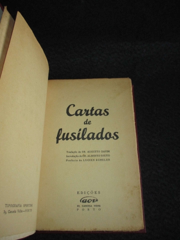 Exemplar com encadernação inteira em sintético ferros marcados a ouro na lombada. Conserva as capas originais de brochura. Tradução de Augusto Davim. Introdução do Dr. Alberto Souto. Prefácio de Lucien Scheler. Reunião de cartas de franco‑atiradores e resistentes franceses executados durante a ocupação nazi. As cartas revelam a dimensão humana, política e moral dos combatentes que enfrentaram o regime de ocupação, constituindo um documento de grande valor histórico e testemunhal.