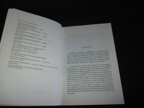 Capa de brochura. Esta obra consiste numa lista de “estrangeirismos”, alfabeticamente ordenados, onde se propõe uma macroestrutura que, para além da nomenclatura propriamente dita, apresenta uma espécie de introdução temática— as Notas Soltas e ainda um Esclarecimento acerca do