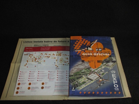 Acompanha recorte de jornal e Mapa Geral. Capa de brochura. Obra profusamente ilustrada com fotografias a cores. Com desdobráveis. Exemplar em muito bom estado. Importante para a história desta notável iniciativa cultural e de intercâmbio entre os povos, comemorativa dos descobrimentos portugueses, que teve como tema: «Os Oceanos, Um Património para o Futuro».