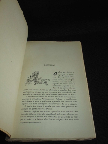 Esta obra inclui notáveis ilustrações de Roque Gameiro, Alberto de Sousa, Alfredo Morais, Rocha Vieira, Álvaro Duarte de Almeida – a quem se deve a luminosa capa – e dos fotógrafos Egídio Costa, P. Guedes, Benoliel, Silva Nogueira, F. Santos, Campeão, Ismael, Figueiredo e Serrano. Capa de brochura. Ilustrações a p/b.. + uma folha desdobrável com fotografias de "antigos e notáveis lidadores portugueses" e "Cavaleiros, matadores, bandarilheiros, praticantes, amadores e aficionados". Obra fundamental da bibliografia tauromáquica portuguesa. Trata-se de uma monografia que documenta o elo íntimo entre Lisboa e a festa brava, com riqueza iconográfica e narrativa.