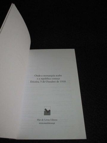 Capa de brochura. Ilustrado. Preserva marcador de página. Obra dedicada ao último dia da Monarquia Constitucional e à fuga da família real pela Ericeira. Edição de grande interesse para a história política portuguesa e para a memória local da Ericeira. História de Portugal. Reúne estudos de vários autores especializados em história política e local, integrando documentação de arquivo, fotografias, mapas e testemunhos da época.