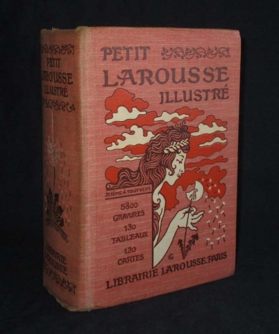 Assinatura de posse na folha de guarda. Corte frontal das folhas com inscrição manuscrita e manchas de tinta. Capa de brochura. Ilustrado. 5800 gravures. 130 Tableaux. 120 cartes. O Petit Larousse Illustré é o mais famoso dicionário‑enciclopédia francês, publicado anualmente pelas Éditions Larousse desde 1905. A edição é continuamente atualizada e permanece uma referência central da língua e cultura francesas. Francês.