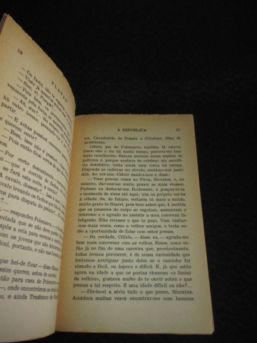 Livros I, II e III. Livros IV, V e VI. Capa de brochura. Tradução de Luís do Espírito Santo. Obra essencial do pensamento socrático e uma das mais importantes bases do pensamento político, A República, ou Politeia, ocupa-se do problema da ideia de justiça, e de como a Filosofia age formativamente na Política.