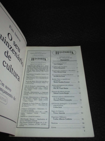 Os ministros de Salazar, Tom Gallagher; A cultura afro-brasileira, Teresa Mesquitela; Os primeiros caçadores: o Mesolítico, Vítor Oliveira Jorge; Os expostos na Idade Moderna, Osvaldo de Sousa; Basílio Teles: o republicano paradoxal, Maria Cândida Proença; Judeus portugueses em colónias holandesas, Elze M. Vonk Matias; História do fabrico do pão, Nelson Correia Borges.