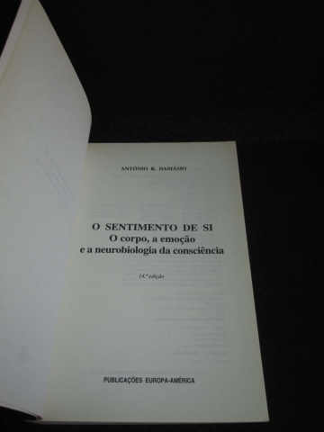 O corpo, a emoção e a neurobiologia da consciência. Capa de brochura. Neste novo livro, que tem sido recebido por cientistas e artistas com as críticas mais calorosas e elogiosas, o neurologista e humanista António Damásio confronta o mistério da consciência. Como é que chegamos a saber? Como é que a mente desenvolve o sentido de si ? Depois de ler "O Erro de Descartes", hoje traduzido em mais de vinte línguas, Jonas Salk escreveu: "Nunca mais conseguiremos olhar para nós ou para o outro sem nos interrogarmos sobre o que se passa por detrás dos olhos que assim se encontram». Em O Sentimento de Si, Damásio avança no mesmo caminho de descoberta e mostra como «a consciência é a chave para uma vida examinada". Psicologia.