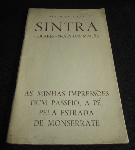 As minhas impressões dum passeio, a pé, pela estrada de Monserrate. Capa de brochura. Ilustrado. Rara obra de cariz memorialista e descritivo sobre a Vila de Sintra e os seus arredores. A obra oferece um olhar nostálgico e detalhado sobre o percurso entre Sintra, Colares e a Praia das Maçãs, capturando a essência da paisagem e da atmosfera da região em meados do século XX.