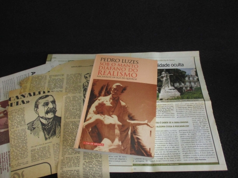 Preserva recortes de vários jornais relacionados com o tema, acrescentando interesse documental. Psicanálise de Eça de Queiróz. Capa de brochura.