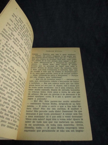 Livro de bolso. Capa de brochura. Versão de João Gaspar Simões. Capa de João da Câmara Leme. Tarass Bulba descreve a vida de um antigo cossaco de Zaporójie, Tarass Bulba, e dos seus dois filhos, Andrei e Ostap. Os filhos, que estudam na academia de Kiev, regressam a casa, de onde os três homens partem numa jornada para a Sietch de Zaporójie (a sede dos cossacos de Zaporójie, localizada no sul da Ucrânia), onde se juntam a outros cossacos e vão para a guerra contra a Polónia.