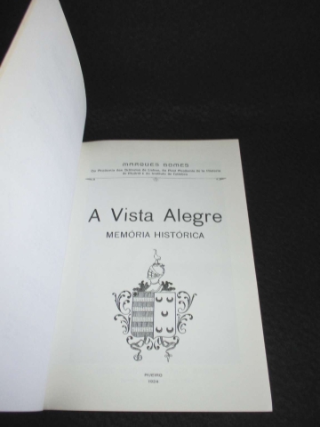 Memória Histórica. Capa de brochura. Ilustrado. Edição fac-símile da primeira edição de 1924 sobre a história da Vista Alegre. Muito estimada monografia histórica da mais importante e célebre fábrica portuguesa de porcelanas, ilustrada com estampas a negro no texto e um retrato de José Ferreira Pinto Bastos em folha à parte e de página inteira.