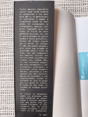 Victor Mancini especializou-se numa forma bizarra de demonstrar o seu amor pela mãe e, em particular, de continuar a pagar a respectiva conta do hospital. De restaurante em restaurante, Mancini finge-se engasgado pela comida, à beira da mais patética asfixia. Ele sabe que a piedade do género humano é muito previsível. Assim, há sempre alguém que o salva. Aí começa, se não uma grande amizade, pelo menos uma relação de protecção para o resto da vida. Com uma componente que Mancini cultiva com sofisticada prudência: semana sim, semana não, ele vai recebendo cheques dos seus salvadores... Entretanto, dedica-se a diversas obras humanitárias, incluindo o tratamento dos mais diversos párias da sociedade. A sua especialidade: cuidar de viciados de sexo em grupo que ele gosta de reunir, à volta de uma mesa, em sessões de terapia colectiva.