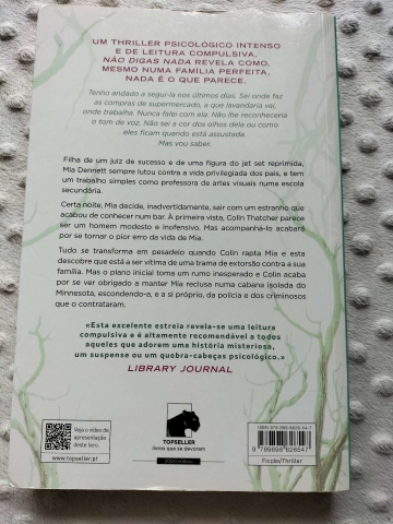 Tenho andado a segui-la nos últimos dias. Sei onde faz as compras de supermercado, a que lavandaria vai, onde trabalha. Nunca falei com ela. Não lhe reconheceria o tom de voz. Não sei a cor dos olhos dela ou como eles ficam quando está assustada. Mas vou saber.