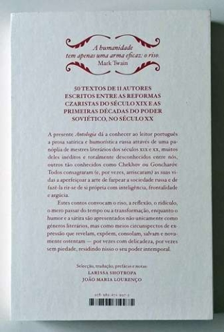 A presente antologia apresenta ao leitor português uma amostra da prosa satírica e humorística russa através de uma panóplia de mestres literários dos séculos XIX e XX, muitos deles inéditos e totalmente desconhecidos do público português, outros tão conhecidos como Chekhov ou Goncharóv. Todos consagraram (e, por vezes, arriscaram) as suas vidas a aperfeiçoar a arte de farpear a sociedade russa e de fazê-la rir-se de si própria com inteligência, frontalidade e argúcia.