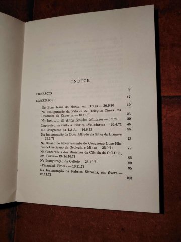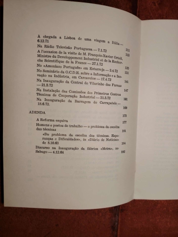 Do Prefácio: Reúnem-se neste volume os textos com que comuniquei com o público na parte final da minha passagem pelo cargo de Secretario de Estado da Indústria, exactamente desde o último que apareceu em «Caminho de País Novo», de meados de 1970, até à minha saída do governo em começos de Agosto de 1972. Em adenda acrescento alguns textos conexos.