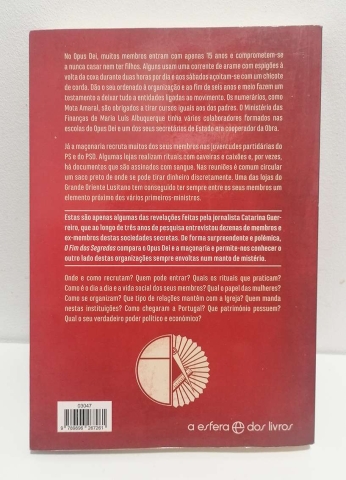 No Opus Dei, muitos membros entram com apenas 15 anos e comprometem-se a nunca casar nem ter filhos. Alguns usam uma corrente de arame com espigões à volta da coxa durante duas horas por dia e aos sábados açoitam-se com um chicote de corda. Dão o seu ordenado à organização e ao fim de seis anos e meio fazem um testamento a deixar tudo a entidades ligadas ao movimento. Os numerários, como Mota Amaral, são obrigados a tirar cursos iguais aos dos padres. O Ministério das Finanças de Maria Luís Albuquerque tinha vários colaboradores formados nas escolas do Opus Dei e um dos seus secretários de Estado era cooperador da Obra. Já a Maçonaria recruta muitos dos seus membros nas juventudes partidárias do PS e do PSD. Algumas lojas realizam rituais com caveiras e caixões e por vezes há documentos que são assinados com sangue. Nas reuniões é comum circular um saco preto de onde se pode tirar dinheiro discretamente. Uma das lojas do Grande Oriente Lusitano tem conseguido ter sempre entre os seus membros um elemento próximo dos vários primeiros-ministros. Estas são apenas algumas das revelações feitas pela jornalista Catarina Guerreiro, que ao longo de três anos de pesquisa entrevistou dezenas de membros e ex-membros destas sociedades secretas. De forma surpreendente e polémica, O Fim dos Segredos compara o Opus Dei e a Maçonaria e permite-nos conhecer o outro lado destas organizações sempre envoltas num manto de mistério. Onde e como recrutam? Quem pode entrar? Quais os rituais que praticam? Como é o dia-a-dia e a vida social dos seus membros? Qual o papel das mulheres? Como se organizam? Que tipo de relações mantêm com a Igreja? Quem manda nestas instituições? Como chegaram a Portugal? Que património possuem? Qual o seu verdadeiro poder político e económico?
