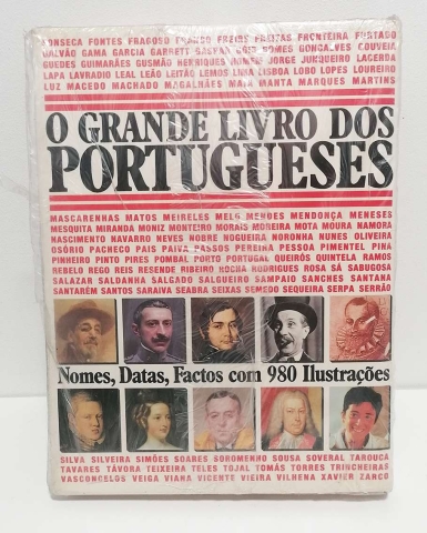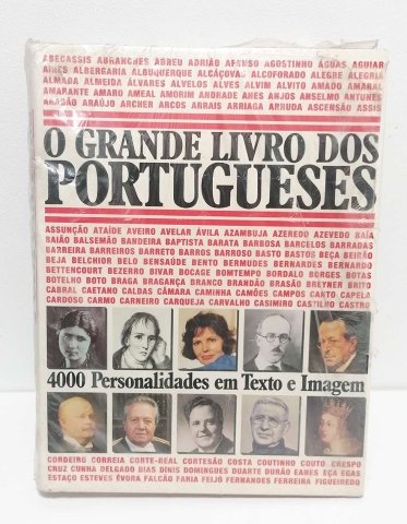 O Grande Livro dos Portugueses. 1990. 4000 Personalidades em Texto e Imagem. Nomes, Datas, Factos com 980 Ilustrações. Encadernação do editor em capa dura de tela vermelha com sobrecapa de proteção ilustrada. Profusamente ilustrado com retratos, fotografias e gravuras a cores e a preto e branco. Esta obra contém a biografia sumária de 4000 portugueses que andaram e andarão pelas bocas do mundo. Textos redigidos ou reelaborados por Manuel Alves de Oliveira. Pesquisa iconográfica de Manuela Rego. A iconografia, a cores e a negro, é especialmente constituída por retratos, caricaturas, gravuras antigas, frontispícios de livros e pinturas. Edição em capa dura.