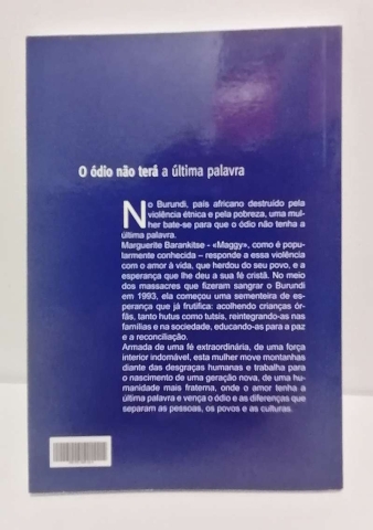Marguerite Barankitse – «Maggy», como é popularmente conhecida – responde a essa violência com o amor à vida, que herdou do seu povo, e a esperança que lhe deu a sua fé cristã. No meio dos massacres que fizeram sangrar o Burundi em 1993, ela começou uma sementeira de esperança que já frutifica: acolhendo crianças órfãs, tanto hutus como tutsis, reintegrando-as nas famílias e na sociedade, educando-as para a paz e a reconciliação.