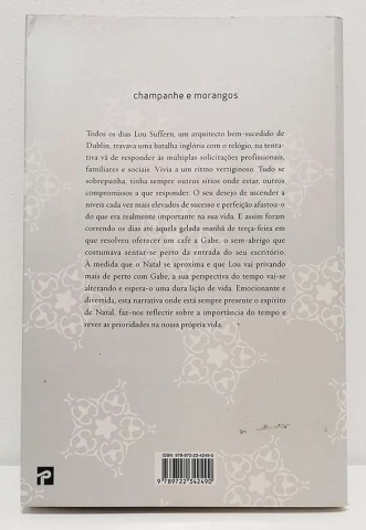 Todos os dias Lou Suffern, um arquitecto bem-sucedido de Dublin, travava uma batalha inglória com o relógio, na tentativa vã de responder às múltiplas solicitações profissionais, familiares e sociais. Vivia a um ritmo vertiginoso. Tudo se sobrepunha, tinha sempre outros sítios onde estar, outros compromissos a que responder. O seu desejo de ascender a níveis cada vez mais elevados de sucesso e perfeição afastou-o do que era realmente importante na sua vida. E assim foram correndo os dias até àquela gelada manhã de terça-feira em que resolveu oferecer um café a Gabe, o sem-abrigo que costumava sentar-se perto da entrada do seu escritório. À medida que o Natal se aproxima e que Lou vai privando mais de perto com Gabe, a sua perspectiva do tempo vai-se alterando e espera-o uma dura lição de vida. Emocionante e divertida, esta narrativa onde está sempre presente o espírito de Natal, faz-nos reflectir sobre a importância do tempo e rever as prioridades na nossa própria vida.