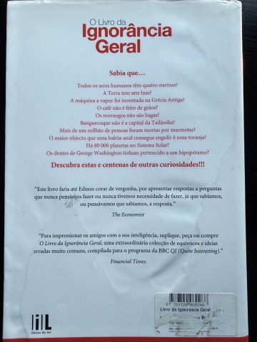 "Para impressionar os amigos com a sua inteligência, suplique, peça ou compre O Livro da Ignorância Geral, uma extraordinária colecção de equívocos e ideias erradas muito comuns, compilada para o programa da BBC QI (Quite Interesting)." Financial Times"