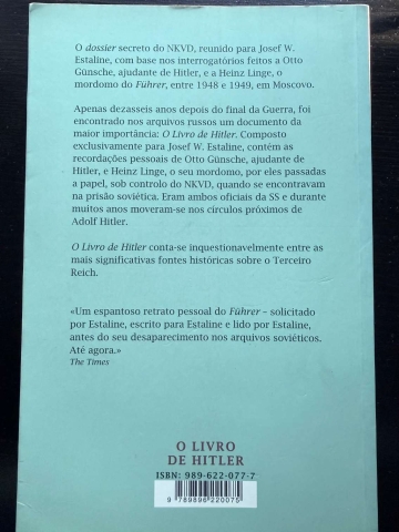 Apenas dezasseis anos depois do final da Guerra, foi encontrado nos arquivos russos um documento da maior importância: O Livro de Hitler. Composto exclusivamente para Josef W. Estaline, contém as recordações pessoais de Otto Günsche, ajudante de Hitler, e Heinz Linge, o seu mordomo, por eles passadas a papel, sob controlo do NKVD, quando se encontravam na prisão soviética. Eram ambos oficiais da SS e durante muitos anos moveram-se nos círculos próximos de Adolf Hitler.