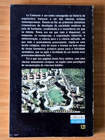 Le Corbusier é um nome consagrado na história da arquitectura francesa e um dos maiores artistas contemporâneos. Deve-se-lhe uma das primeiras tentativas sistemáticas de devolução da sociedade moderna ao seio da harmonia, arrebatando-a à incoerência em que se debate. Numa era em que tudo é disponível, as máquinas, os transportes a organização industrial, a administração, a ciência pura e a ciência aplicada, em que tudo é praticamente preexistente, impõe-se uma tarefa ciclópica, esta de trazer o homem ao bom senso de forma harmónica, primeiro passo para a felicidade verdadeira, que se opõe à facilidade de um mundo novo pré-estruturadamente feliz.