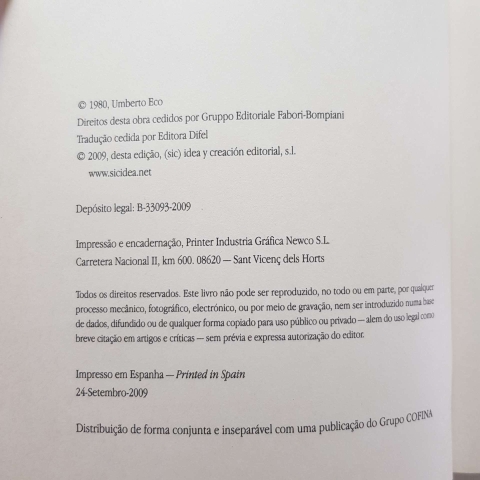 Guilherme de Baskerville, tendo chegado com Adso pouco antes das duas delegações, encontra-se subitamente envolvido numa verdadeira história policial. Um monge morreu misteriosamente, mas este é apenas o primeiro dos sete cadáveres que irão transtornar a comunidade durante sete dias. Guilherme recebe o encargo de investigar esses prováveis crimes. O encontro entre os teólogos fracassa, mas não a investigação do nosso Sherlock Holmes da Idade Média, atento decifrador de sinais, que através de uma série de descobertas extraordinárias, conseguira no final encontrar o culpado nos labirintos da Biblioteca.