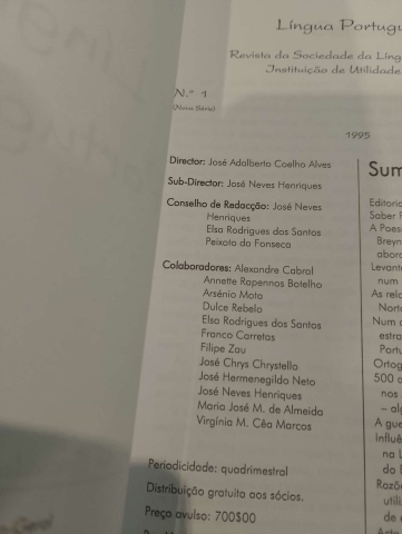 Revista da Sociedade da Língua Portuguesa, Director: José Adalberto Coelho Alves.