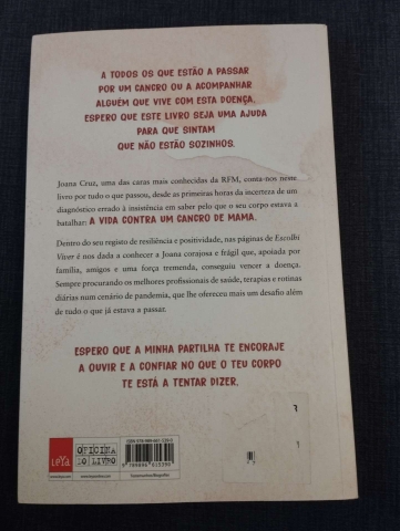 Uma das caras mais conhecidas da RFM, conta-nos por tudo o que passou, desde as primeiras horas da incerteza de um diagnóstico errado à insistência em saber pelo que o seu corpo estava a batalhar: a vida contra um cancro de mama. Dentro do seu registo de resiliência e positividade, nas páginas de Escolhi Viver é nos dada a conhecer a Joana corajosa e frágil que, apoiada por família, amigos e uma força tremenda, conseguiu vencer a doença. Sempre procurando os melhores profissionais de saúde, terapias e rotinas diárias num cenário de pandemia, que lhe ofereceu mais um desafio além de tudo o que já estava a passar.