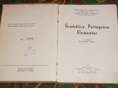 Gramática Portuguesa Elementar 1º Ciclo do Ensino Liceal (Livraria Simões Lopes, 1957)