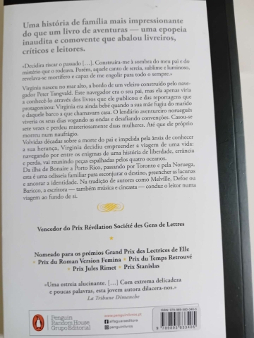 Virginia nasceu no mar alto, a bordo de um veleiro construído pelo navegador Peter Tangvald. Este navegador era o seu pai, mas ela apenas viria a conhecê-lo através dos livros que ele publicou e das reportagens que protagonizou: Virginia era ainda bebé quando a sua mãe fugiu do marido e daquele barco a que chamavam casa. O lendário aventureiro norueguês viveria os seus dias vogando as ondas e desafiando convenções. Casou-se sete vezes e perdeu misteriosamente duas mulheres. Até que ele próprio morreu num naufrágio. Volvidas décadas sobre a morte do pai e impelida pela ânsia de conhecer a sua herança, Virginia decidiu empreender a viagem de uma vida: navegando por entre os enigmas de uma história de liberdade, errância e perda, vai reunindo peças espalhadas pelos quatro oceanos.