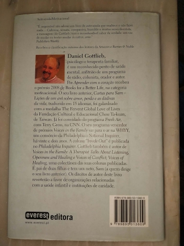 O que significa ser humano?- pergunta Dan Gottlieb, o aclamado psicólogo e anfitrião de um programa de rádio, no início deste livro. As respostas estão nestas páginas. Com uma voz gentil e orientadora que o fidelizou junto de milhões de leitores e ouvintes, Dan descreve como os ensinamentos mais significativos das nossas vidas surgem em momentos inesperados. Grande contador de histórias, Dan apresenta-nos lições ternas e extremamente profundas, que revelam a sua própria vulnerabilidade, bem como o amor e generosidade para com os outros. Estas revelações vêm de um autor que passou por muitos tipos de perdas ao longo da sua vida. Desde o momento em que sofreu a lesão na coluna vertebral, que o deixou tetraplégico com trinta e três anos, Dan Gottllieb viu-se perante vários tipos de interrogações, que a maioria das pessoas encontra ao longo da vida.