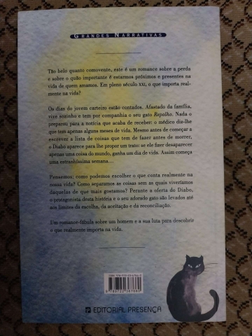 Os dias do jovem carteiro estão contados. Afastado da família, vive sozinho e tem por companhia o seu gato Repolho. Nada o preparou para a notícia que acaba de receber: o médico diz-lhe que tem apenas alguns meses de vida. Mesmo antes de começar a escrever a lista de coisas que tem de fazer antes de morrer, o Diabo aparece para lhe propor um trato: se ele fizer desaparecer apenas uma coisa do mundo, ganha um dia de vida. Assim começa uma estranhíssima semana…