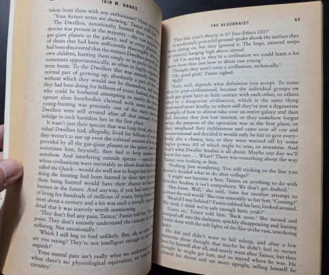 The Nasqueron Dwellers inhabit a gas giant on the outskirts of the galaxy, in a system awaiting its wormhole connection to the rest of civilization. In the meantime, they are dismissed as decadents living in a state of highly developed barbarism, hoarding data without order, hunting their own young and fighting pointless formal wars.