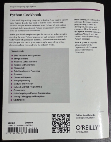 Inside, you'll find complete recipes for more than a dozen topics, covering the core Python language as well as tasks common to a wide variety of application domains. Each recipe contains code samples you can use in your projects right away, along with a discussion about how and why the solution works.