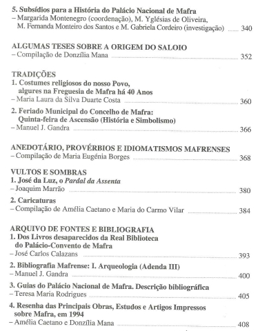 BOLETIM CULTURAL ’94. [Fevereiro de 1995]. *** Coordenação: Manuel J. Gandra *** [Vários Autores] *** [Mafra]: Câmara Municipal de Mafra, 1995. (23 x 16 cm.) com 415 + [1] pp. com várias ilustrações a p/b.. + [5] folhas desdobráveis com plantas do Real Edifício de Mafra de 1827. Capa flexível. Exemplar razoável. Capa com marcas de manuseamento, vincos, algumas manchas (ténues e só visíveis no lado de dentro) e um pouco gasta nas margens e na lombada, que apresenta também vincos de abertura. Globalmente, apesar de acusar o uso, está ainda apresentável. Páginas globalmente bem conservadas e limpas, apresentando apenas uma ou outra pequena mancha (raras e de muito reduzida importância) e alguns sinais de uso pouco significativos. *** Primeira edição do Boletim Cultural da Câmara Municipal de Mafra, correspondendo ao ano de 1994 e sendo o terceiro número desta publicação anual de grande interesse pelo conjunto de estudos e ensaios que encerra, em âmbitos tão variados como a geologia, a literatura, a arqueologia, a etnografia, a biografia, a história, a arte, etc., relacionados sobretudo com o concelho de Mafra. (Índice nas imagens 3 e 4). Tiragem de 1000 exemplares. *** Portes: envio gratuito em correio normal (tarifa especial para livros) * envio em correio registado: 1,70
